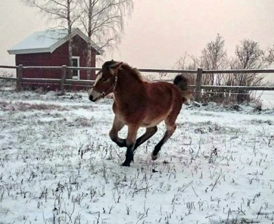 Då är Rox levererad och utforskar nya hagen. Allt gått jättebra hittills.